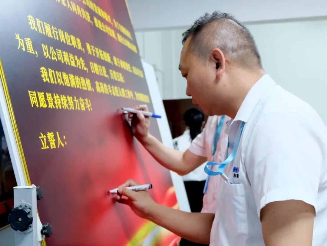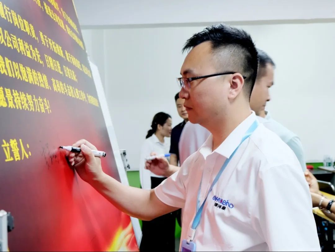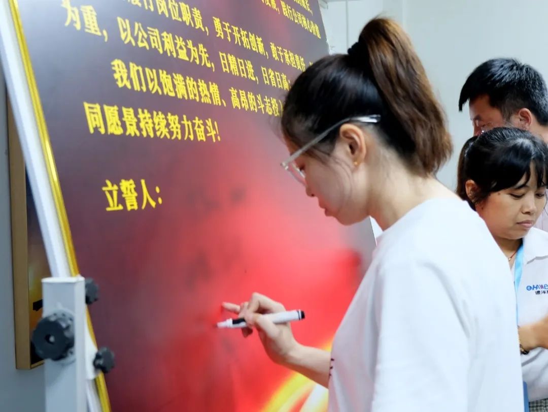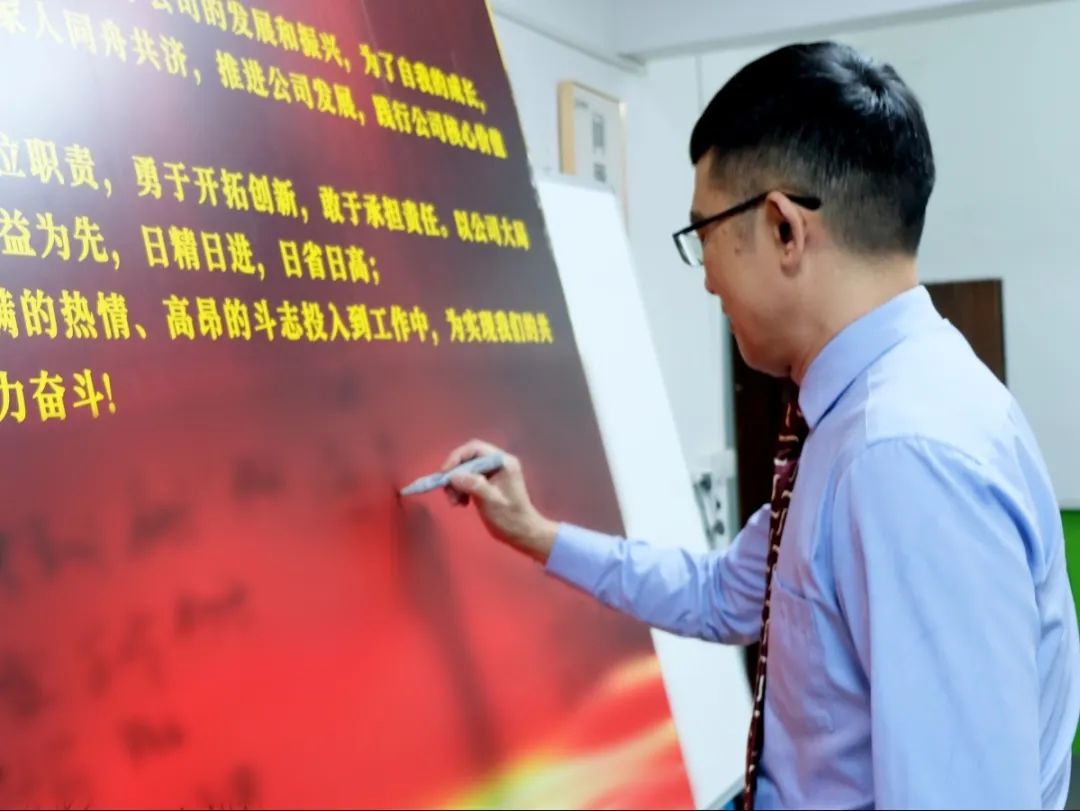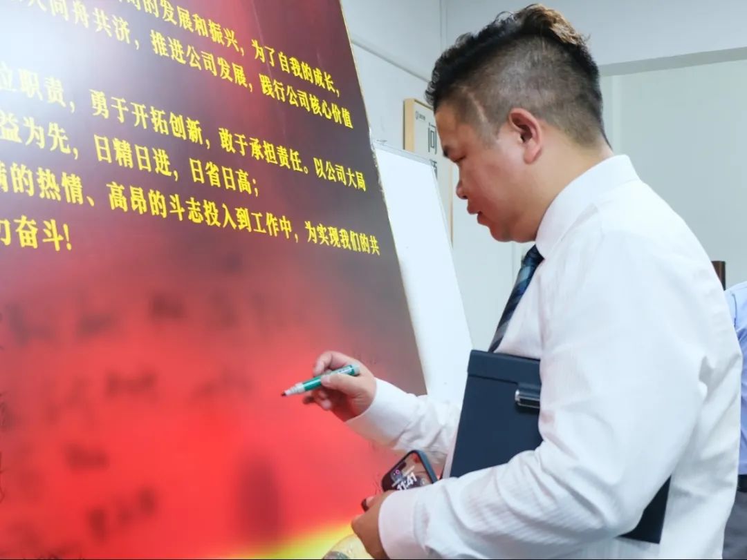 會上,萬總為項目老師頒發(fā)了授權(quán)書和聘書,帶領(lǐng)項目關(guān)鍵人員在誓詞上簽字并集體宣誓,鼓勵大家和公司共同成長進(jìn)步。