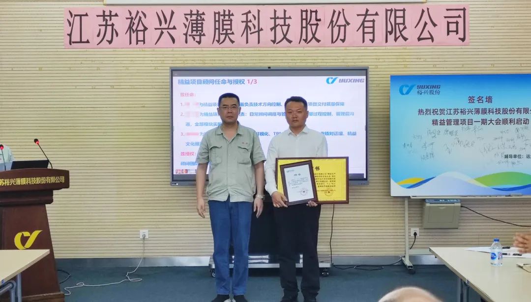 為促進項目的有效落地,此次改善還成立了專項改善小組,明確各崗位職責(zé),強化責(zé)任意識,會上裕興股份領(lǐng)導(dǎo)為遠大方略顧問團頒發(fā)授權(quán)書和聘書,為精益改善小組成員頒發(fā)了聘書。