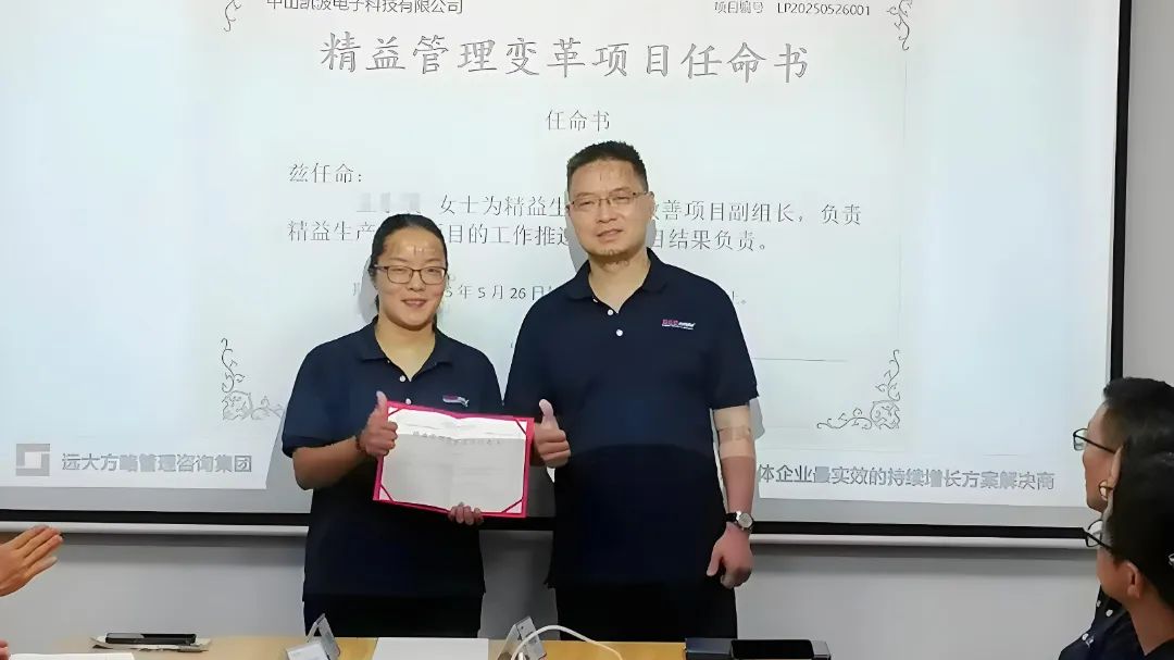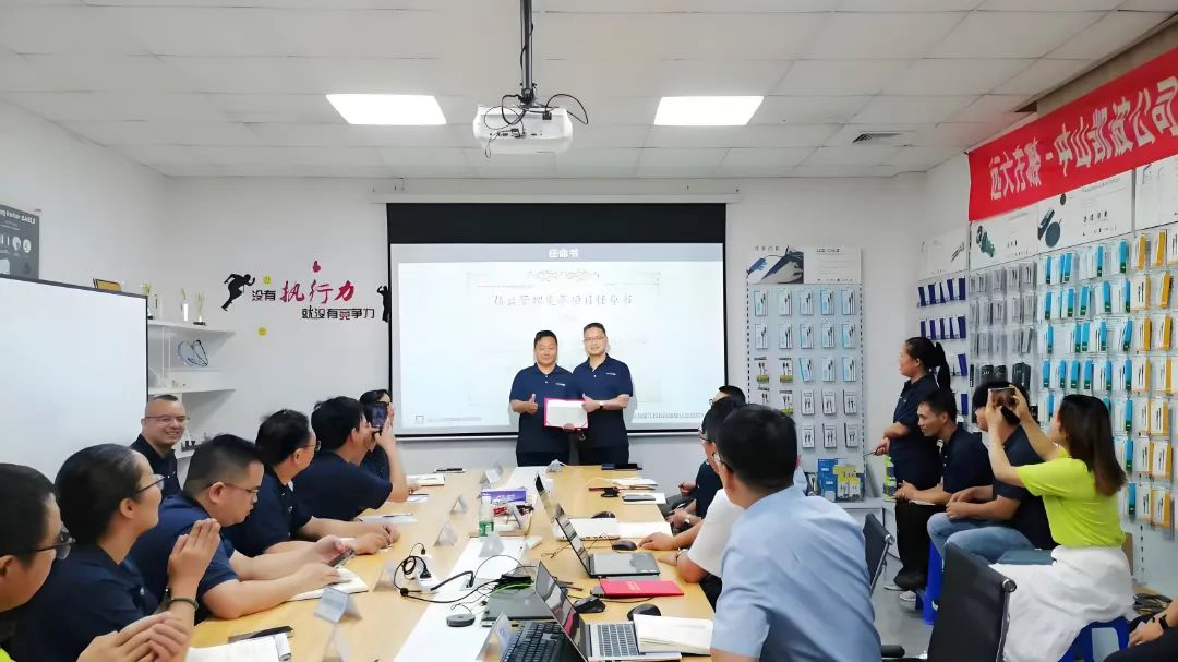 為促進項目的有效落地,此次改善還成立了專項改善小組,明確各崗位職責,強化責任意識,會上王總為遠大方略顧問團頒發(fā)授權書,為精益改善小組成員頒發(fā)了任命書。
