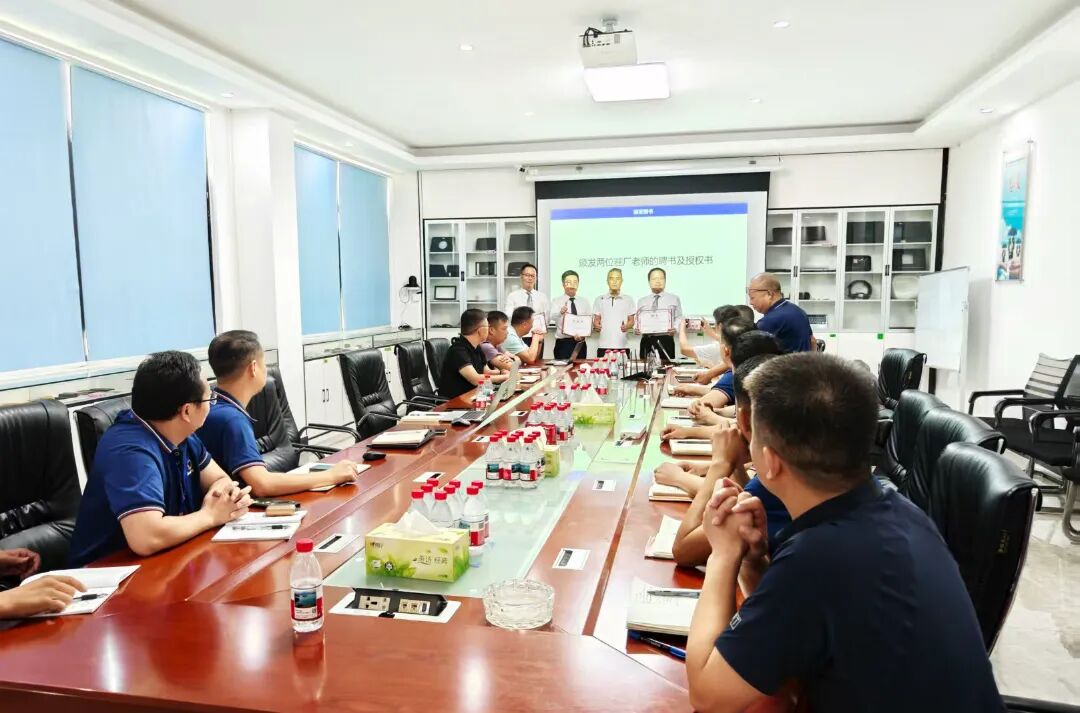 為促進項目的有效落地,會上竣邦公司領(lǐng)導為駐廠老師頒發(fā)了聘書和授權(quán)書。