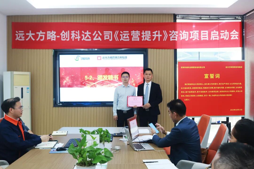 創(chuàng)科達是一家以技術為核心驅動力的自動化設備生產商,在行業(yè)內有著自身的技術優(yōu)勢與發(fā)展特色。此前,雙方通過彼此了解以及深入的調研分析,精準地找到了合作的價值契合點。這個契合點不僅契合雙方的發(fā)展戰(zhàn)略,更能為彼此帶來新的發(fā)展機遇。基于此,白總對此次合作滿懷憧憬與信心。他堅信,在遠大方略老師的專業(yè)加持下,通過雙方深度協作,一定會形成強大的發(fā)展合力,推動公司在未來實現全方位、高質量的發(fā)展。
