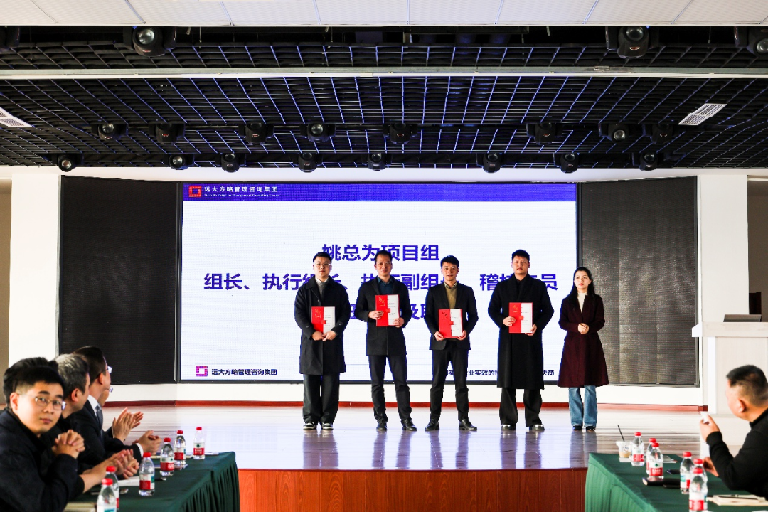 在明確了戰(zhàn)略方向和動員令之后,會議上也宣讀了此次任命,明確了項(xiàng)目指導(dǎo)委員會、項(xiàng)目管理辦公室以及各專項(xiàng)工作組的負(fù)責(zé)人和核心成員名單。會上,姚總為顧問團(tuán)隊(duì)頒發(fā)了授權(quán)書,為項(xiàng)目組成員頒發(fā)了聘書,進(jìn)一步明確了各崗位職責(zé),堅(jiān)定了變革的決心。